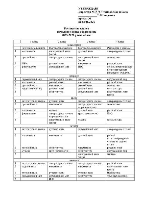 Расписание уроков 1-4 классы