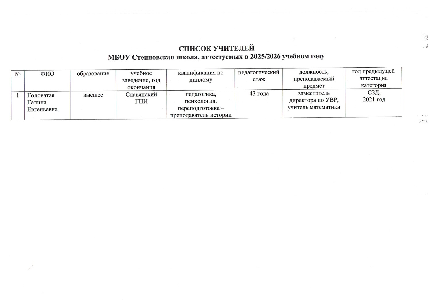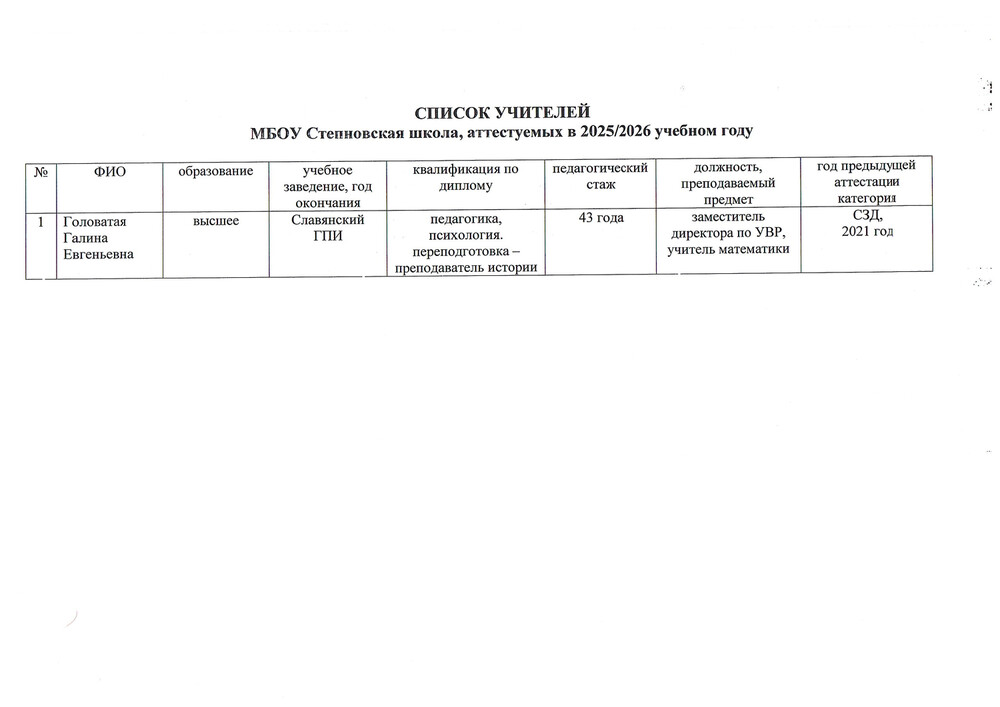 Список аттестуемых учителей в 2025-2026 учебном году